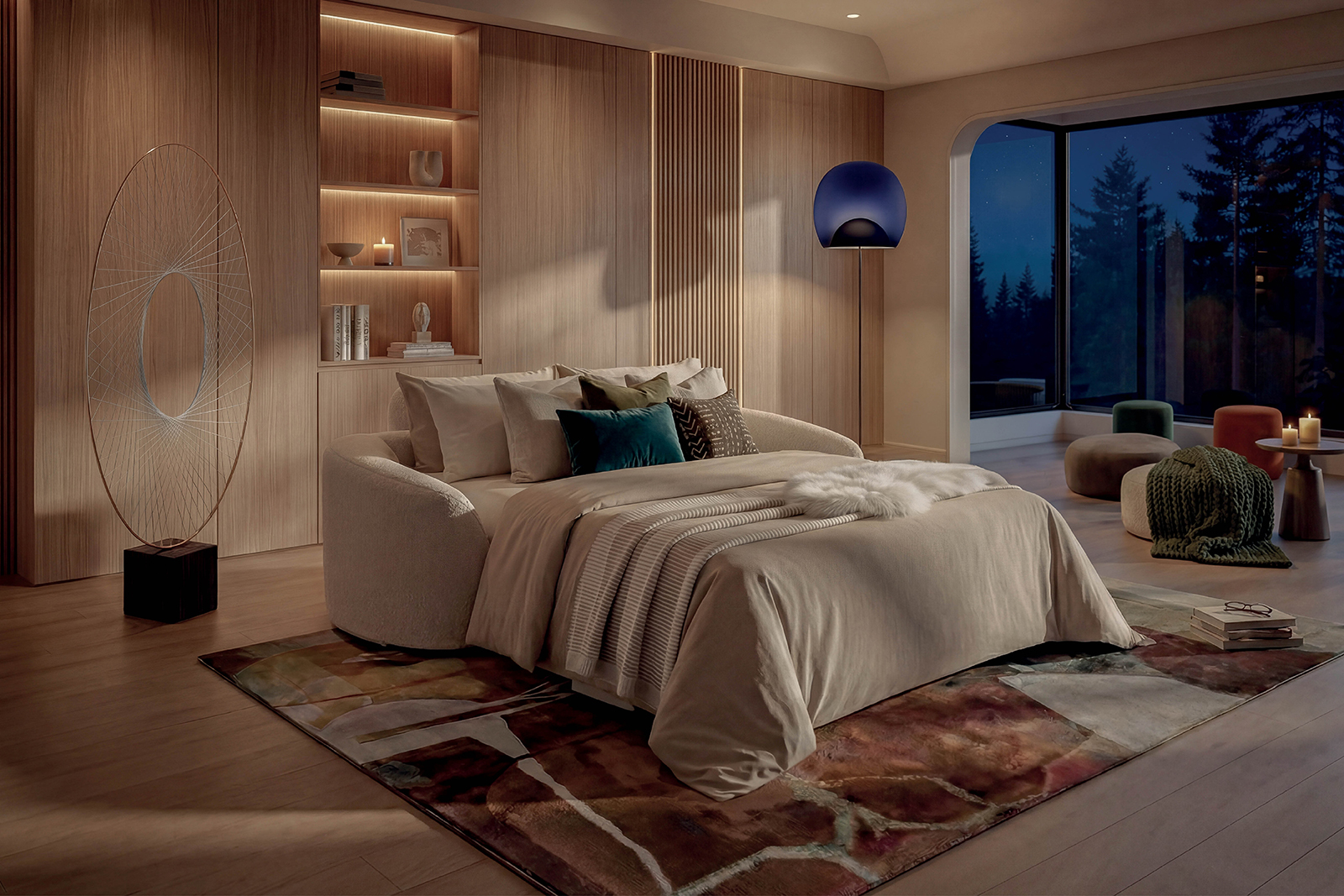 Véritable cocon de confort, il se transforme avec fluidité en un couchage accueillant pour vos invités, sans rien perdre de son élégance naturelle.